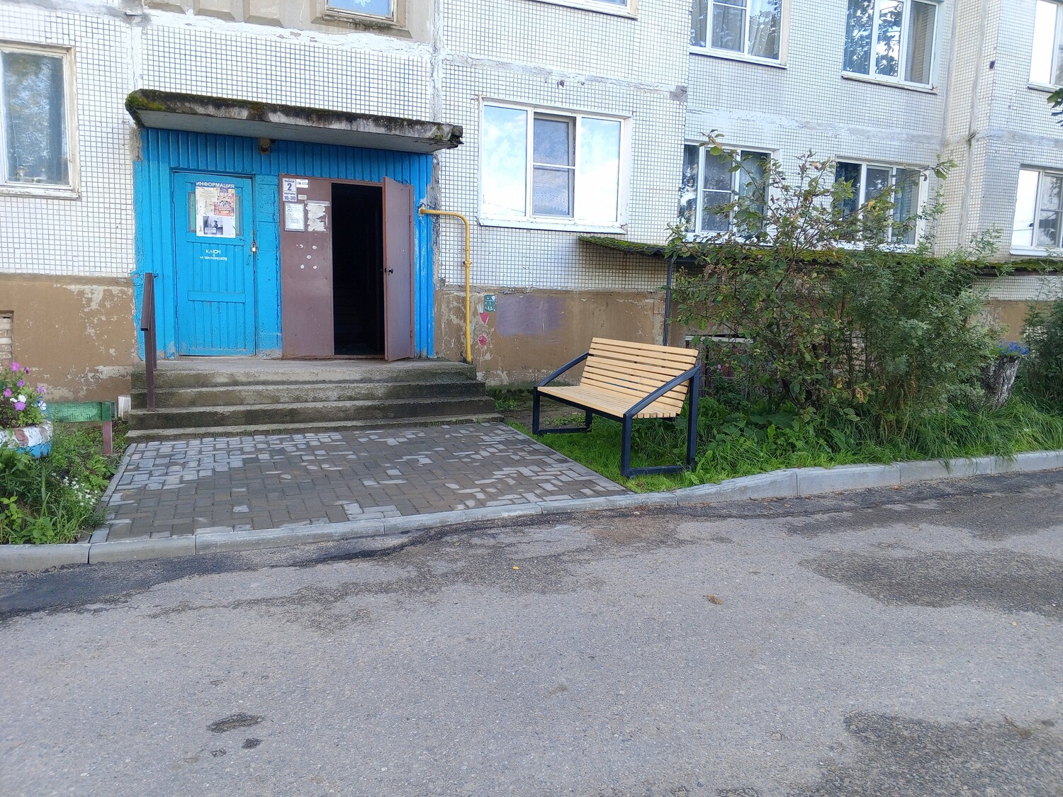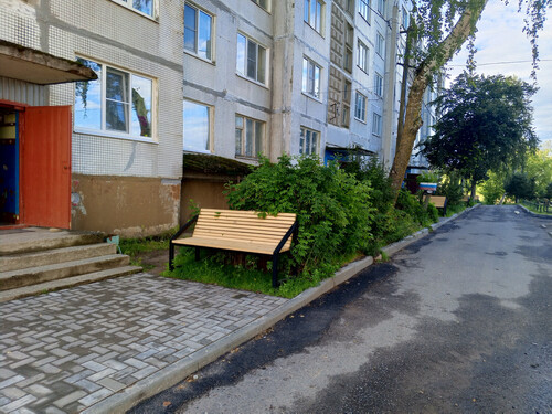 Принимая во внимание неоднократные обращения жителей: необходима реализация проекта благоустройства общественной территории: -обустройство входной группы тротуарной плиткой, -установка скамеек, - устройство газона, -установка ограждений детской площадки.